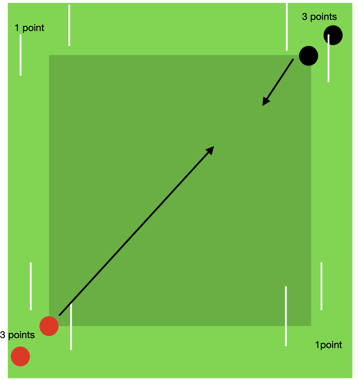 If so, can run through one of the three goal to earn the points?